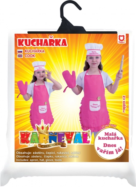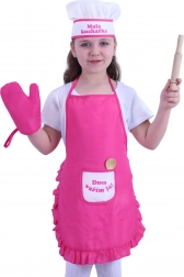 Le costume idéal pour chaque petite chef! Ce costume rose comprend un tablier, une toque de chef, un gant de cuisine et des ustensiles en bois - tout ce qu'il faut pour s'amuser à jouer.
