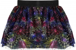 Transformez un déguisement en un clin d’œil – la jupe noire avec une couche de tulle léger imprimé de toiles multicolores apporte une touche magique à n’importe quelle tenue. Le tissu est aéré, agréable à porter et ondule joliment en mouvement.