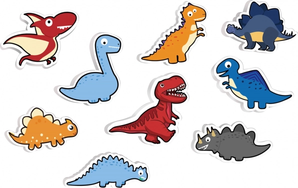 - Support, 9 silhouettes de dinosaures, 9 autocollants, nombre correspondant d’aimants