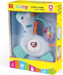 Elle est équipée de piles de type AG13 incluses, prêtes à l'emploi. Un clip pratique permet une fixation facile à la poussette, garantissant que le jouet est toujours à portée de main.