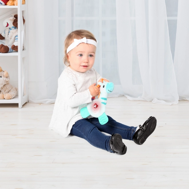 La girafe en peluche est conçue pour captiver avec ses couleurs vives et ses sons amusants qui s'activent en appuyant dessus. Ce jouet est un compagnon idéal pour le jeu et l'apaisement de l'enfant.