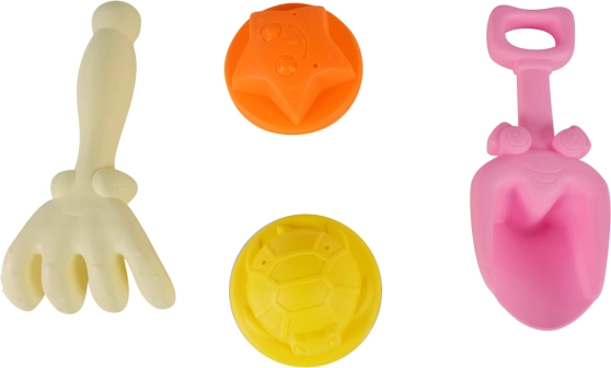 Contient un seau, une pelle, un râteau, deux moules et un moulinet, ce qui est la combinaison idéale pour les jeux de sable.
