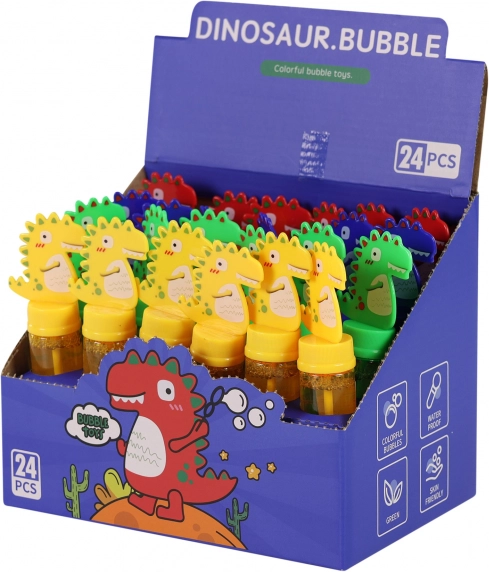 Profitez de beaucoup de plaisir avec le bublifuk coloré avec motif dinosaure d'une capacité de 35 ml, qui comprend un souffleur dans le capuchon.