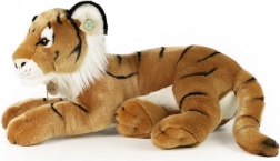 Adorable tigre en peluche de 60 cm, cousu à la main dans une peluche de haute qualité et très douce, à l’aspect presque vivant. Grâce à sa finition réaliste, son matière moelleuse et son garnissage éco conçu à partir de bouteilles PET recyclées, c’est un compagnon idéal pour les enfants comme pour les adultes. Fait partie de la collection exclusive de la marque RAPPA.