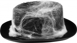 La toile d’araignée blanche sur le chapeau noir crée un contraste marqué et un rendu réaliste – idéal pour Halloween et les thèmes horrifiques.