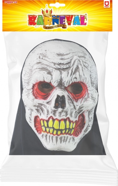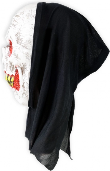 Ce masque de crâne avec foulard/capuche noir transforme votre costume en un clin d’œil. Le contraste du blanc avec des contours oculaires rouges et des dents jaunes souligne un look terrifiant, qui ressort parfaitement sur les photos et dans l’obscurité sous les lumières de la fête.