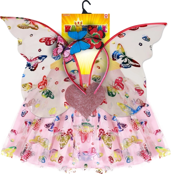 Transformez votre petite princesse en un papillon enchanteur avec ce costume incroyable. La jupe rose avec des papillons colorés est magnifiquement complétée par un serre-tête décoratif et des ailes de papillon. Un choix parfait pour un jeu de rôle ou des fêtes de carnaval.
