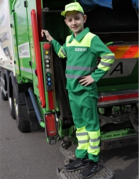 Ce costume est idéal pour tous les petits passionnés de camions-bennes ! Il est livré en ensemble comprenant une blouse avec inscription, une casquette et un pantalon, tous avec des éléments réfléchissants pour une meilleure visibilité.