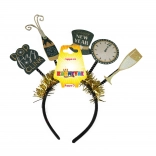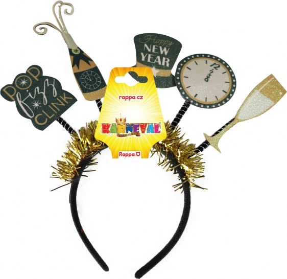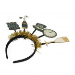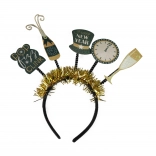 Ce serre-tête noir et or est l’accessoire parfait pour toutes les festivités et soirées du Nouvel An. Il est délicatement orné d’éléments typiques de l’ambiance de la Saint-Sylvestre. Il s’adresse à tous ceux qui souhaitent accueillir la nouvelle année avec style, espièglerie et élégance.