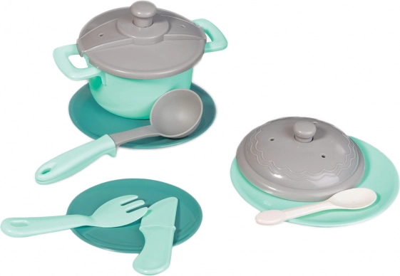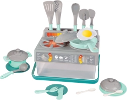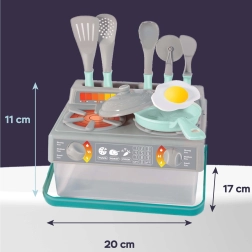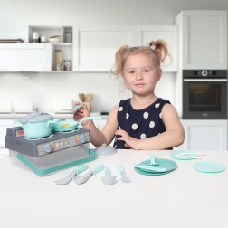 Ce set de cuisine pour enfants aux couleurs gris et turquoise contient tout ce dont les enfants ont besoin pour jouer au cuisinier. Le set comprend :