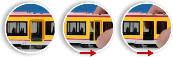 Le jeu réaliste est renforcé par des portes ouvrables manuellement. Un simple levier sous les portes permet une ouverture et une fermeture faciles.