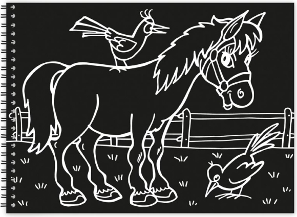 Bloc-dessin à gratter vous offre des possibilités créatives et amusantes. Grâce au stylo à gratter inclus, vous créez des motifs uniques et colorés sur chacun des dix feuillets.