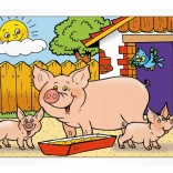 - 8 (chat et chatons, mouton, chien, porcelets, coq et poules, cheval et poulain, vache et veau, oie)