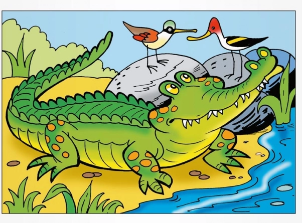 - De grandes images d'animaux comme le crocodile, le lion, le singe et d'autres.