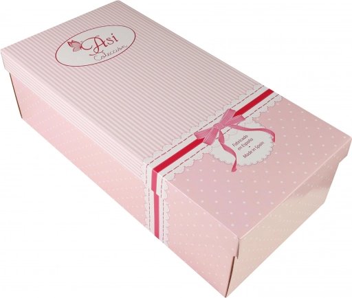 La poupée María de la marque familiale ASI est fabriquée en Espagne avec un accent sur la qualité et la sécurité. Le corps entièrement en vinyle est dur et solide, tout en étant agréable au toucher et parfaitement moulé dans les moindres détails, y compris l’anatomie. L’apparence réaliste est renforcée par des yeux bleus fixes et de délicats cils.