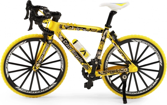 Ce vélo de montagne miniature jaune est un excellent choix pour les enfants qui aiment l’action et le mouvement, ainsi que pour les adultes collectionneurs. Grâce à la roue libre, il démarre facilement et roule en douceur sur une surface plane. Son rendu réaliste se distingue aussi bien sur une étagère qu’en jeu.
