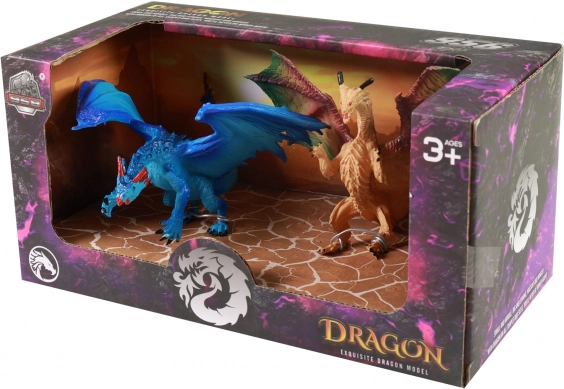 L'ensemble comprend deux dragons - un bleu et un marron, chacun avec ses propres éléments uniques et sa palette de couleurs.