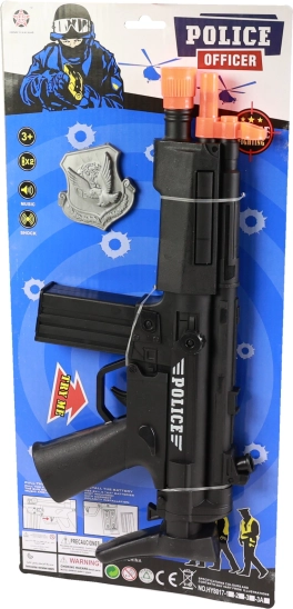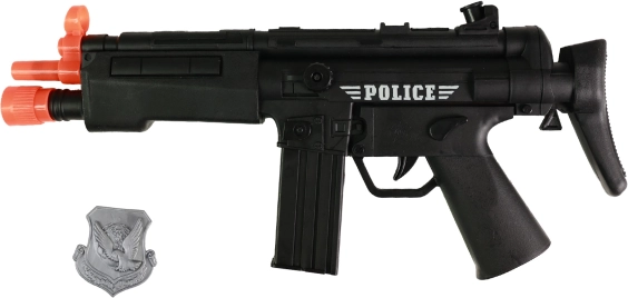 Le fusil-mitrailleur en plastique de police est le jouet parfait pour tous les enfants qui aiment jouer aux gardiens de la loi. Ce fusil offre des sons réalistes de tir, activés par la gâchette. Le jouet nécessite 2 piles AA, non incluses dans l'emballage.