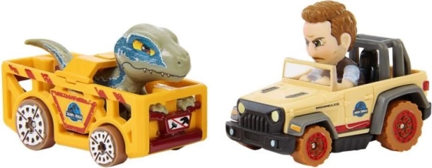 Ressentez une véritable tension grâce aux voitures Blue Raptor et Owen avec figurines de conducteurs intégrées.