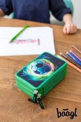 Une trousse scolaire à trois étages avec un design de ballon de football offre un espace supplémentaire pour tous les articles de papeterie, y compris les crayons de couleur et feutres robustes, grâce aux élastiques adaptés. Elle est équipée de fermetures éclair de qualité et dispose d'un dossier renforcé pour une manipulation facile.