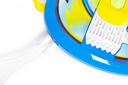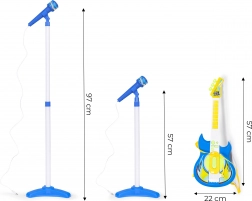 Le set comprend également un micro avec support réglable, suffisamment léger pour les petites mains, et les enfants peuvent facilement se transformer en chanteurs sur scène. Il suffit de brancher le câble et le concert peut commencer !