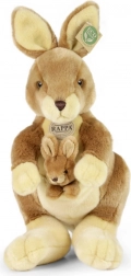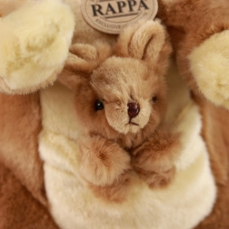 Magnifique kangourou en peluche avec son bébé de 37 cm. Le lot comprend un petit de taille env. 11 cm, que l’on peut retirer de la poche après avoir coupé l’attache. Le kangourou est fabriqué en peluche de haute qualité et fait partie de la collection exclusive de jouets en peluche RAPPA. Nous avons choisi une approche plus respectueuse de l’environnement – une démarche ÉCOLOGIQUE. Que signifie ÉCOLOGIQUE ? Le rembourrage du jouet en peluche est fabriqué à partir de bouteilles PET recyclées. Ce matériau est totalement sûr, indiscernable au toucher d’un rembourrage standard et entièrement certifié pour la sécurité, même des tout-petits.