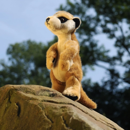 Des yeux travaillés, un museau soigné et la coloration typique du suricate donnent au jouet un aspect vivant que les enfants adorent immédiatement.