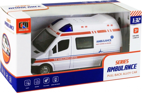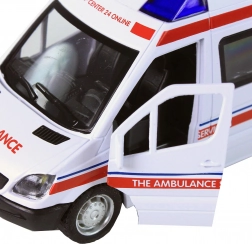 Jouet ambulance exceptionnel qui impressionnera chaque enfant. Il est fabriqué en métal durable et imite parfaitement les services de secours réels avec des détails réalistes comme des effets sonores et lumineux. Les portes latérales et arrière s'ouvrent, augmentant l'interactivité du jouet.