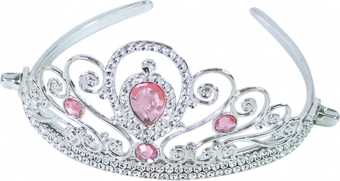 Une belle couronne avec des pierres roses et des détails en métal fin, légère et confortable à porter pour toutes les princesses.