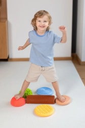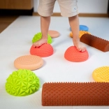Le chemin sensoriel Tullo contient 6 éléments diversifiés, pouvant être combinés librement pour créer des parcours d'obstacles uniques. Chaque élément offre des sensations tactiles différentes, des légères protrusions aux textures marquées, procurant une expérience sensorielle riche et stimulant le développement des pieds des enfants.