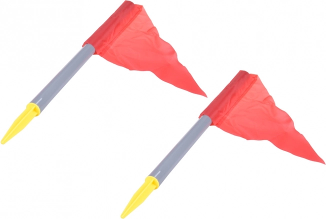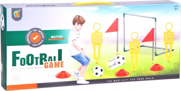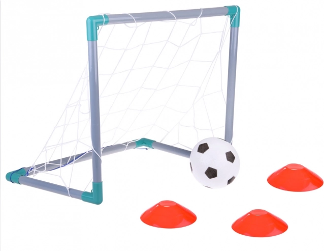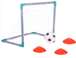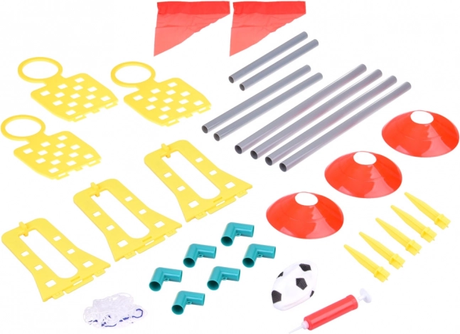 Comprend tout ce dont vous avez besoin : but, filet, pompe, ballon en caoutchouc, drapeaux et cônes en plastique.
