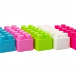 Ce set coloré de grandes briques en plastique dans des tons de vert, rose, blanc et turquoise est idéal pour les premiers projets de construction. Les dimensions exceptionnellement grandes (28 × 9 × 9 cm) assurent une prise en main sûre et confortable, permettant aux enfants de construire des tours, des ponts et des structures imaginaires. Le sac de transport pratique facilite le rangement et le déplacement – le plaisir vous accompagne partout.