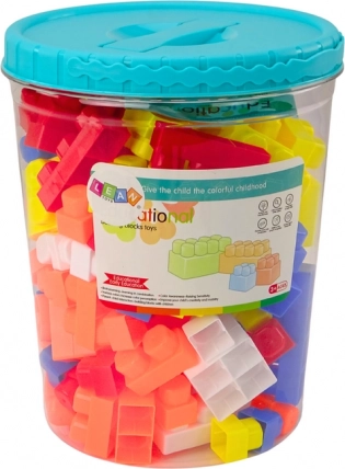 Ce jeu de construction polyvalent ravira tous les petits bâtisseurs. Grâce aux formes variées et aux couleurs chatoyantes, les enfants peuvent créer des constructions simples ou plus avancées, développer leur motricité fine et leur perception spatiale. L’emballage seau transparent refermable avec poignée facilite le transport et le rangement.