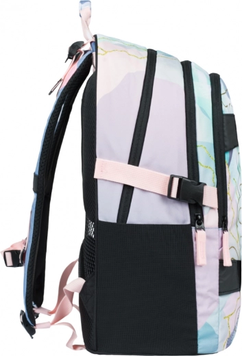 Sac à dos scolaire Skate Moon offre un design ergonomique avec bretelles réglables et trois compartiments spacieux. Il dispose d’une poche dédiée pour ordinateur portable ou tablette et de poches latérales élastiques pour une bouteille. Son faible poids de 850 g et son volume de 25 litres en font un choix idéal pour une utilisation quotidienne. Le sac est en outre équipé d’éléments réfléchissants pour une sécurité accrue.