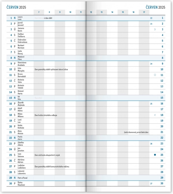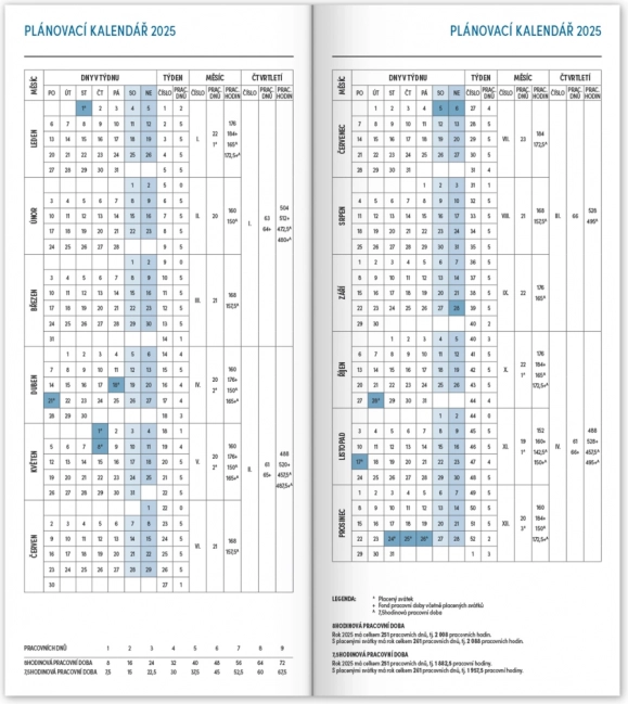 Le calendrier tchèque inclut :