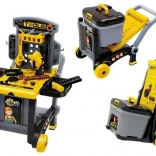 Ce set bien pensé pour petits bricoleurs combine un établi avec étagères latérales, un chariot modulable pour transporter facilement les outils et une boîte pratique pour les petits accessoires. Idéal dès 3 ans, il aide à développer l’adresse, la coordination œil–main et la patience lors du vissage, du martelage et de la construction.