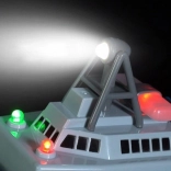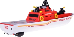 Le bateau de sauvetage est également équipé de lumières, ce qui le rend idéal pour les jeux dans la pénombre. Cet ensemble comprend le bateau, la télécommande, le chargeur et une batterie rechargeable. Le jouet est fabriqué en plastique résistant pour assurer une longue durée de vie.