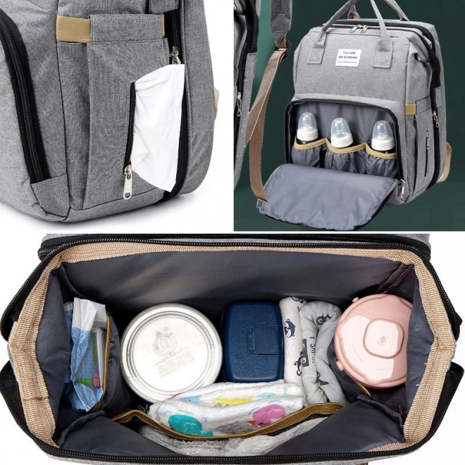Sac à dos multifonction pour maman moderne, conçu pour s’adapter à un mode de vie trépidant. Grâce à une organisation pratique des poches, il offre des espaces de rangement pour plusieurs biberons ou gourdes pour l’enfant, une poche pour lingettes humides utilisable sans retirer tout le paquet, ainsi qu’une grande poche principale pour ranger des objets volumineux. Ce sac à dos est polyvalent et propose une option de repos pour le tout-petit en déplacement grâce à un petit lit de voyage. Son design multifonction permet aussi une utilisation en sac bandoulière ou en sac à roulettes.