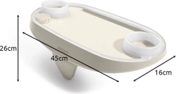 Conçue pour une praticité et une sécurité maximales : 2 porte-boissons maintiennent gobelets, verres et bouteilles sans risque de renversement, tandis que la surface pour tablette ou smartphone permet de regarder vos contenus favoris en tout confort. L’alimentation est assurée par 2 piles CR2032 (incluses), sans câbles ni installation.