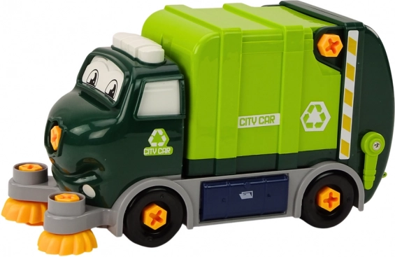 Ce camion de recyclage DIY au style dessin permet aux enfants de découvrir le monde des machines et de la mécanique. Grâce à la perceuse jouet, au tournevis et aux embouts de rechange, les enfants peuvent démonter et remonter le véhicule, entraînant ainsi leur motricité fine, leur raisonnement logique et leur patience. Les brosses avant tournent pendant la marche et, avec la poubelle incluse, créent une simulation authentique du nettoyage des rues.
