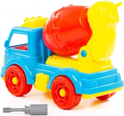 Grâce au tournevis fourni, les enfants peuvent démonter puis remonter la bétonnière, développant ainsi leur motricité fine et leur sens technique.