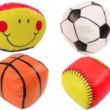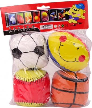 Un lot ludique de 4 ballons souples pour enfants qui permet de jouer en toute sécurité et d’apprendre différents sports – football, basket-ball, base-ball et rugby. Chaque ballon est souple et sûr, idéal même pour les plus jeunes sportifs. Le sachet transparent pratique facilite le transport au terrain, au parc ou en sortie. Parfait pour le développement de la motricité, de la coordination et de l’esprit d’équipe.