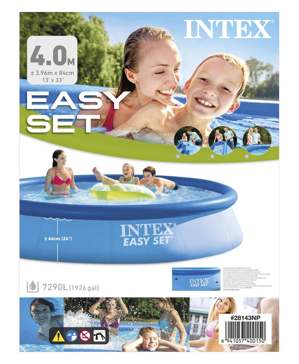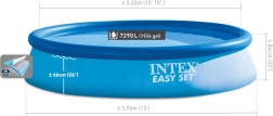 Un diamètre de 396 cm et une hauteur de 84 cm offrent suffisamment d’espace pour les enfants et les adultes. Idéal pour les jeux d’été et la détente dans l’eau.