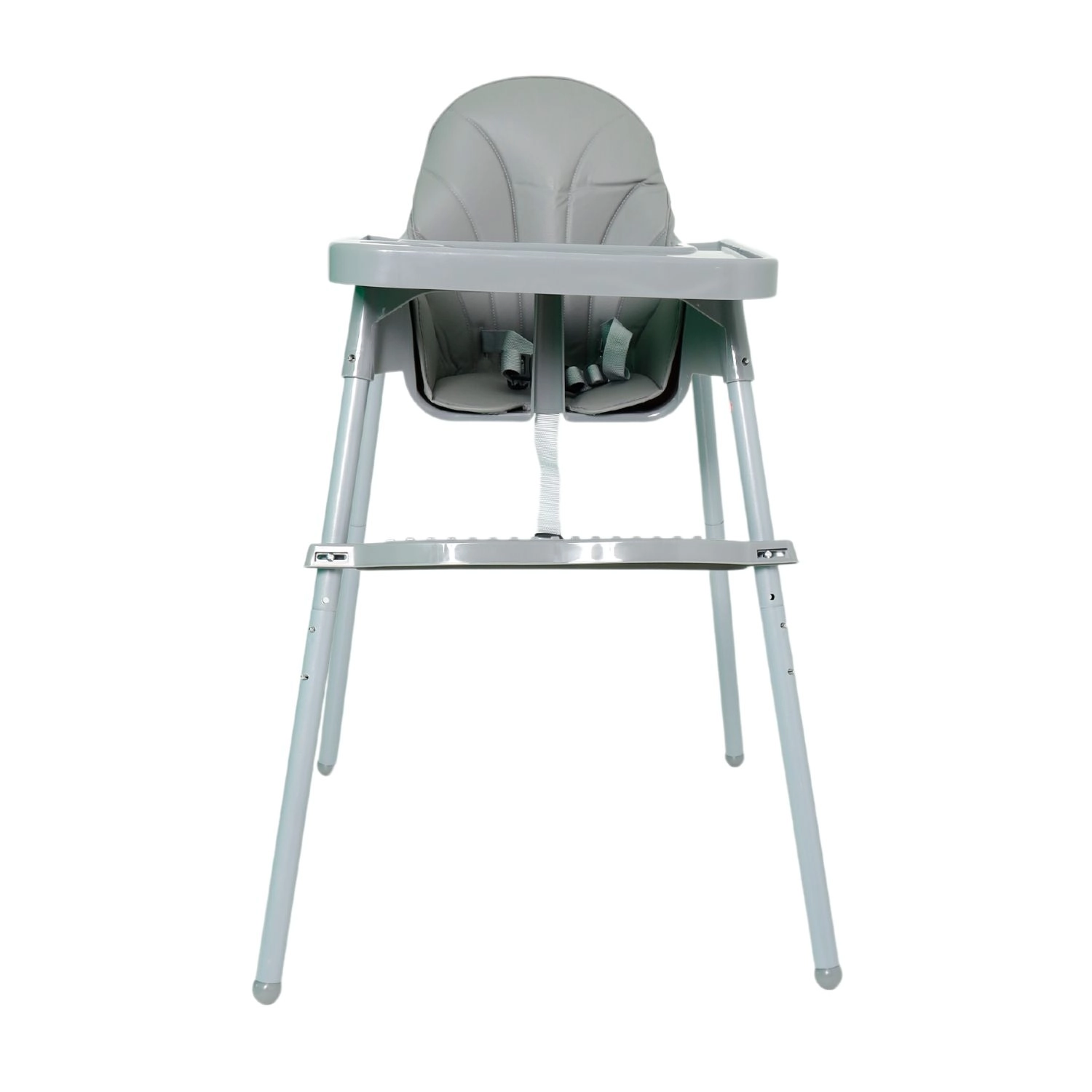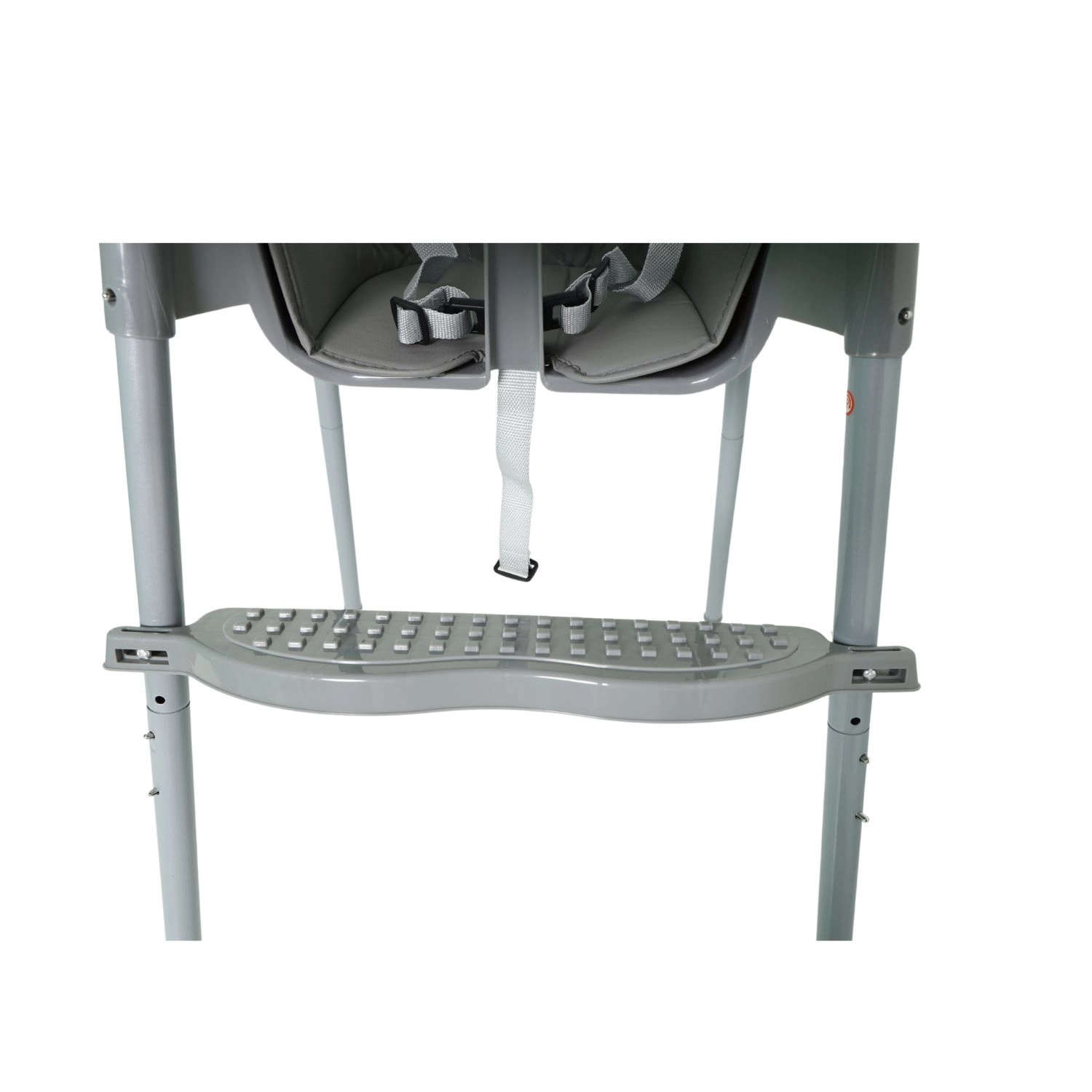 Le large écartement des pieds d’environ 46 × 46 cm et les pieds tubulaires robustes assurent une stabilité fiable. Les ceintures de sécurité multipoints maintiennent l’enfant en sécurité pendant les repas et les jeux.