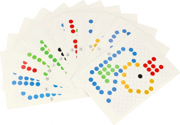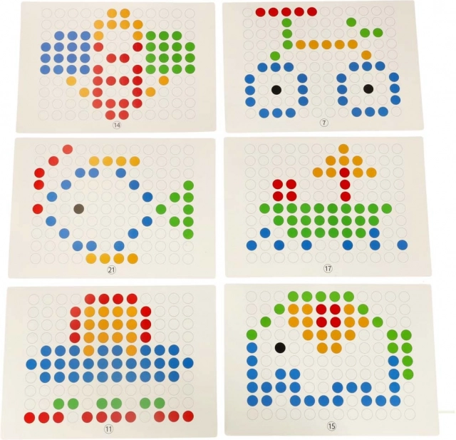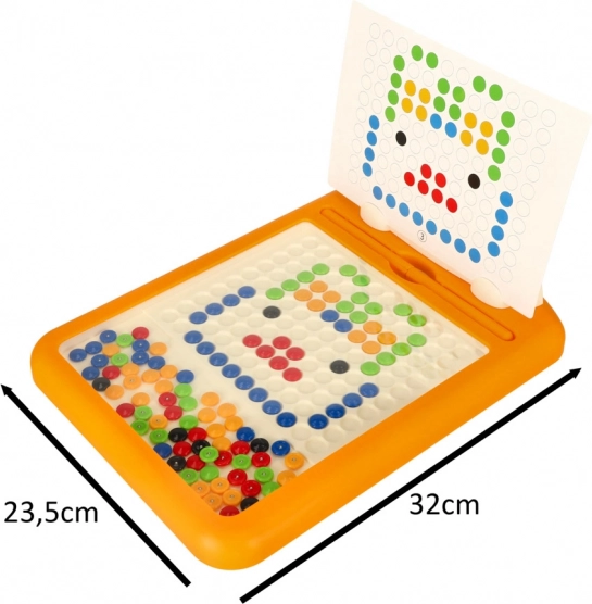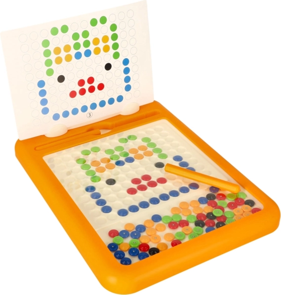 Grâce au stylo magnétique, les enfants déplacent facilement les boutons colorés et composent des images selon leur imagination ou à l’aide de gabarits. Amusement sans désordre et résultat immédiat.