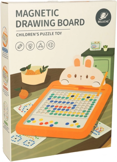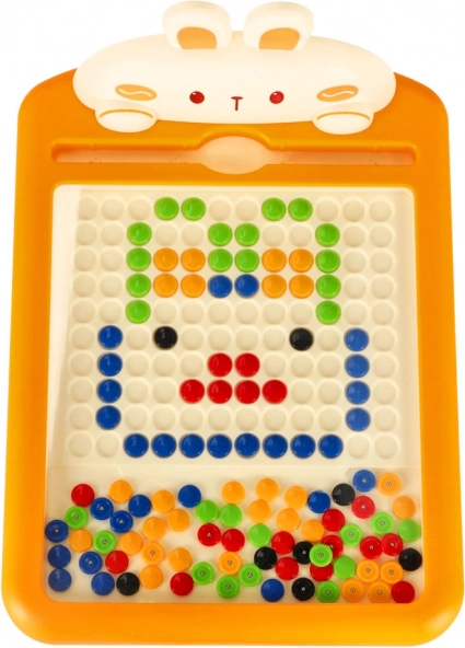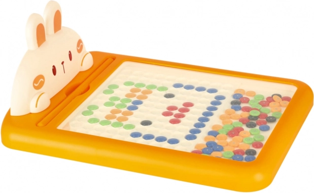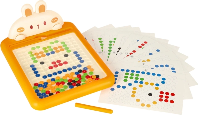Ce tableau magnétique à mosaïque comprend des boutons magnétiques colorés que l’enfant déplace avec un stylo magnétique pour créer une grande variété de motifs et d’images. Des gabarits sont inclus pour faciliter les débuts comme pour une création libre illimitée. Le petit lapin situé sur la partie supérieure du cadre donne au jeu un aspect convivial.