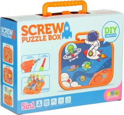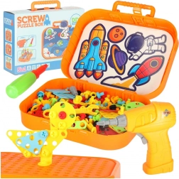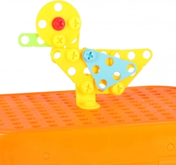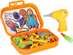 Cette mosaïque créative dans une valisette pratique offre aux enfants des possibilités de construction illimitées – des images simples aux structures 3D. Les pièces colorées, vis et embouts s’assemblent facilement, tandis que la perceuse pour enfants à piles et le tournevis apportent un aspect réaliste de petit bricoleur.