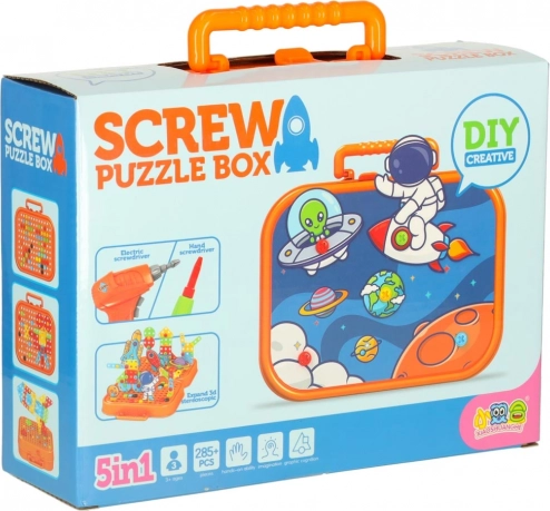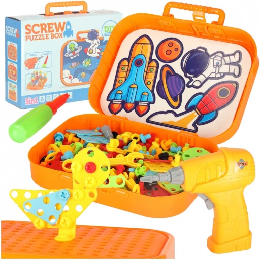 Découvrez un jouet ludique et éducatif pour petits constructeurs : une mosaïque portable avec perceuse électrique et vis. Les enfants entraînent leur motricité fine, leur créativité et leur raisonnement logique en construisant des modèles 2D et 3D aux motifs spatiaux. La mallette orange compacte sert à la fois d’espace de rangement et de surface de jeu, idéale pour les voyages.