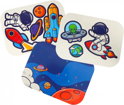 En vissant et en assemblant, les enfants développent la motricité fine des doigts, la coordination œil–main et la patience. La création stimule en plus l’imagination et la perception spatiale. Les éléments spatiaux thématiques inspirent histoires et jeux partagés.