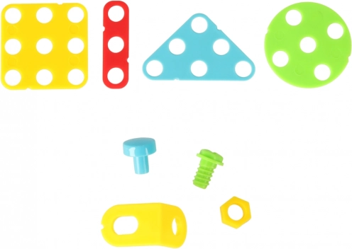 Des formes colorées, des vis et des connecteurs permettent de créer des images et des modèles en volume – l’imagination est sans limites.